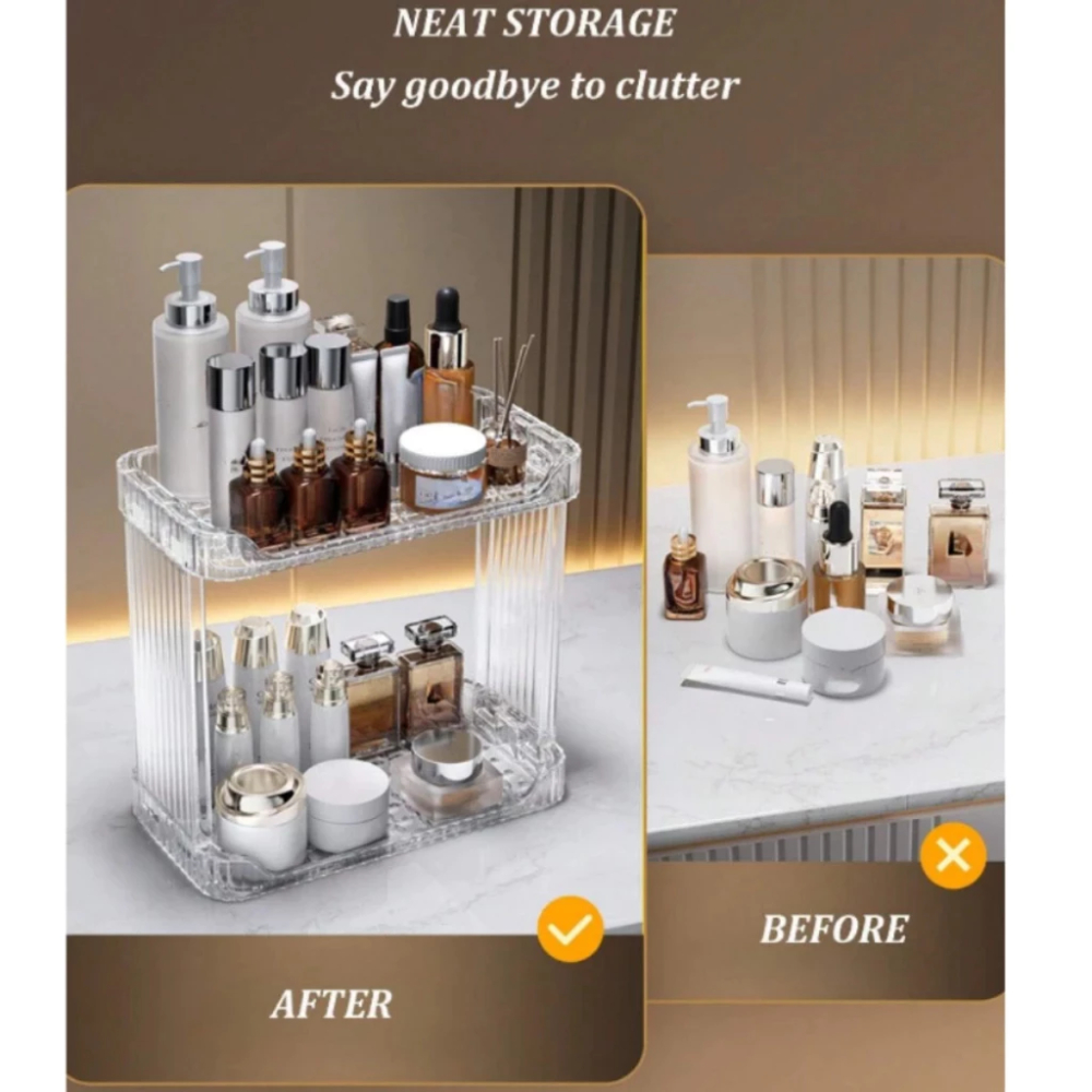 Mantenha seus cosméticos, produtos de skincare e itens essenciais sempre à mão com o Organizador de Maquiagem Acrílico 2 Camadas.